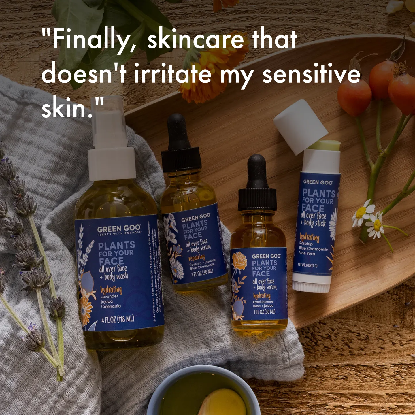 Harsh cleansers strip your skin's natural oils, leaving it tight and dry. Heavy moisturizers clog pores and cause breakouts. Chemical serums promise miracles but deliver irritation. Plants For Your Face works differently. We use oil-based formulas that mimic your skin's natural sebum — so they absorb instantly without clogging pores or feeling greasy.